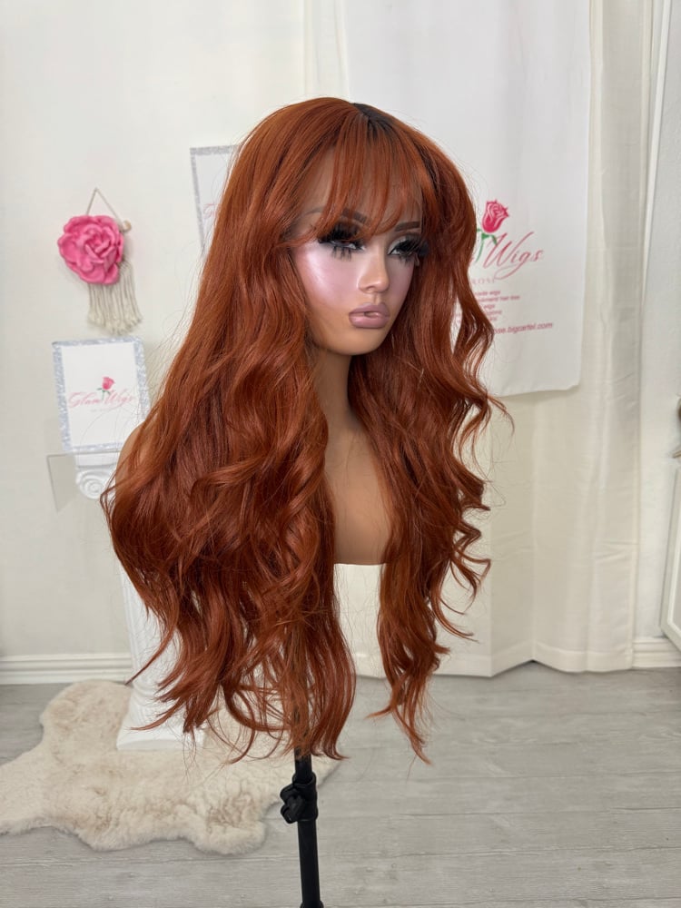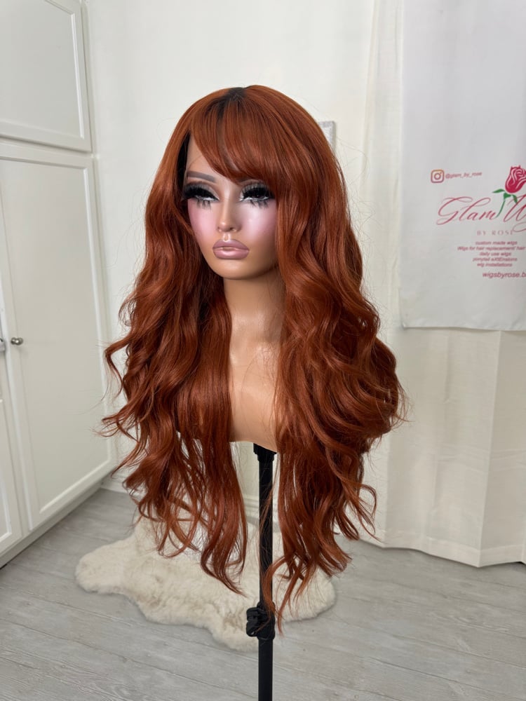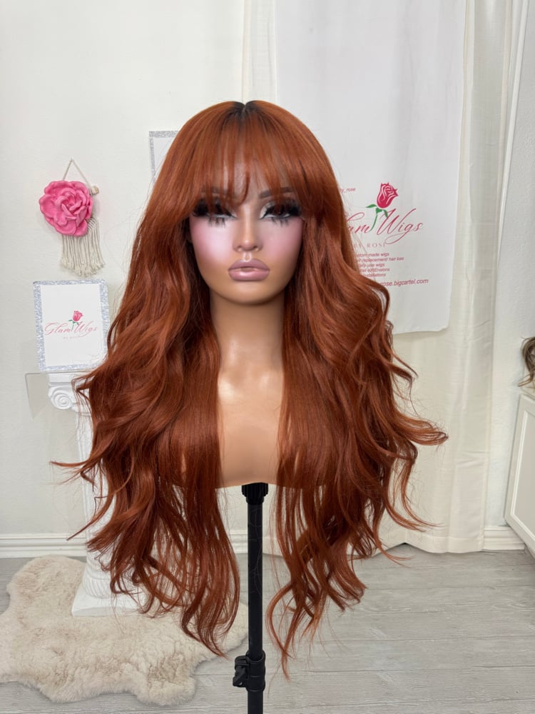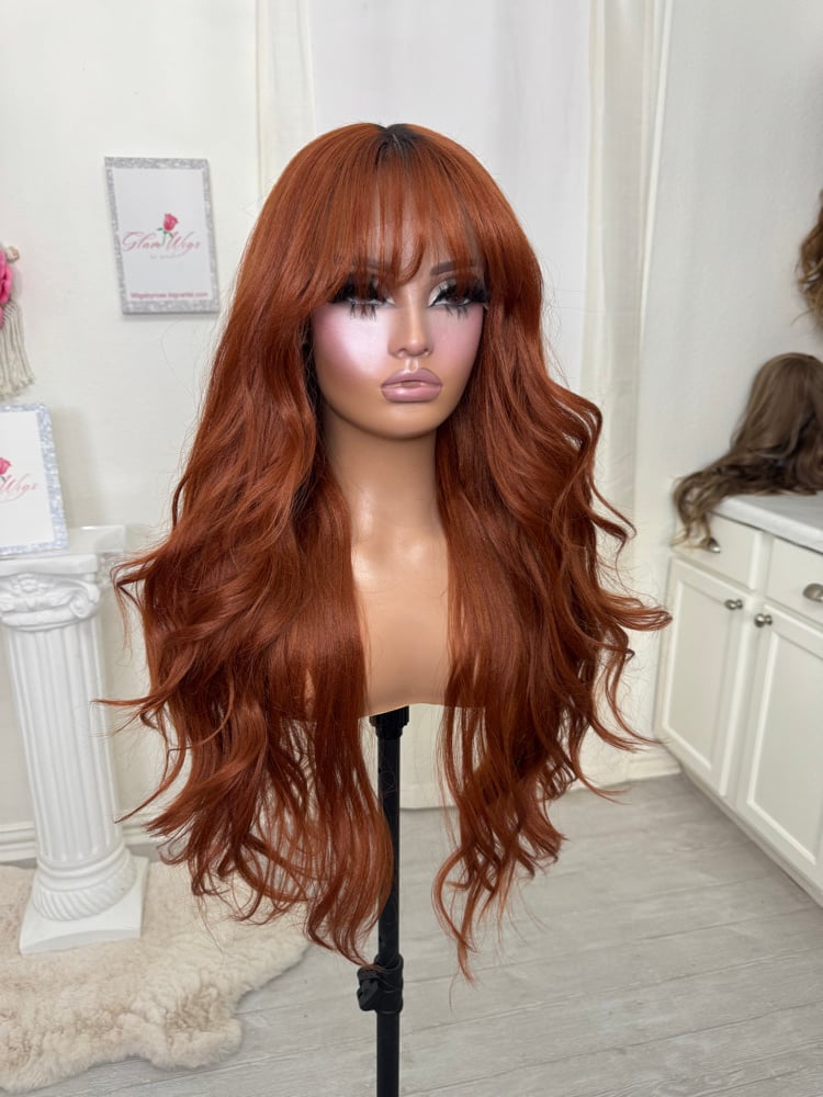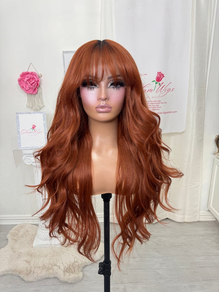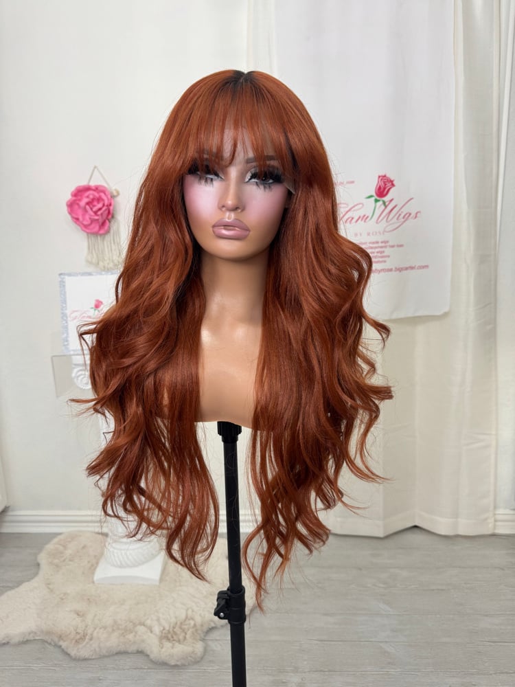 T part lace front glueless wig. Hand painted smudge roots, Soft natural feeling synthetic and human hair blended fiber, most realistic hair texture, heat resistant up to 400° one size fits all stretch breathable cap with adjustable straps and combs inside 28 inch length. Final sale item.