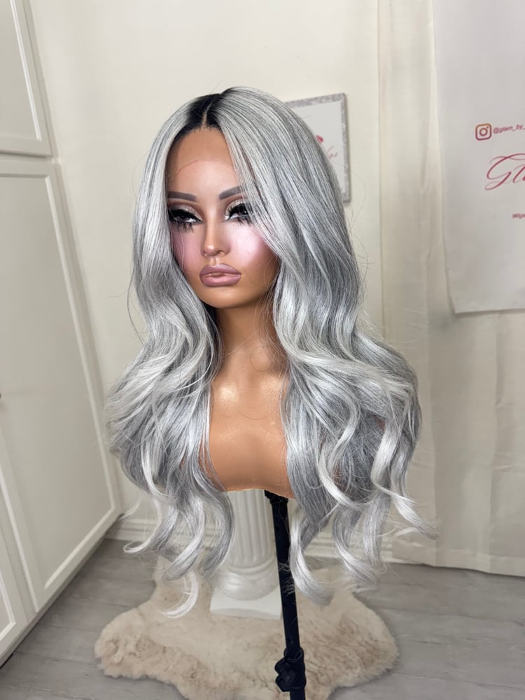 T part lace front glueless wig with hand plucked natural hairline, synthetic and human hair blended fiber most realistic hair texture, heat restant up to 400, stretch breathable cap, with combs and adjustable straps, 29 inch length with layers, for side part look shift wig to side, final sale item