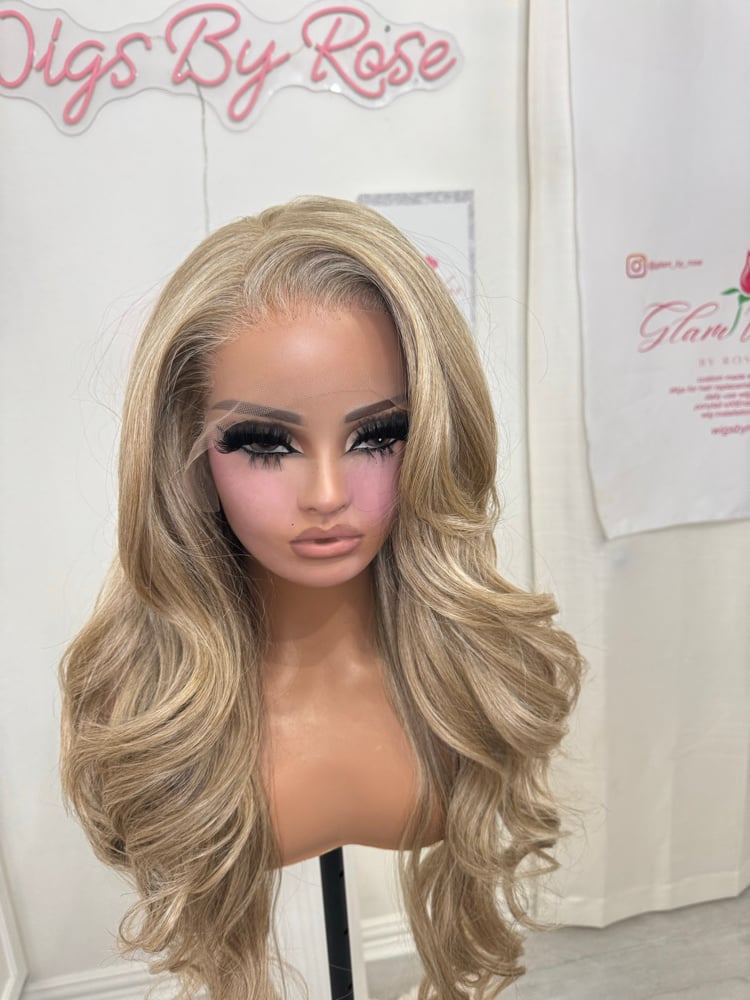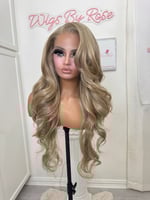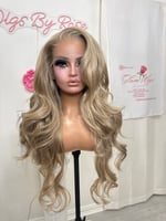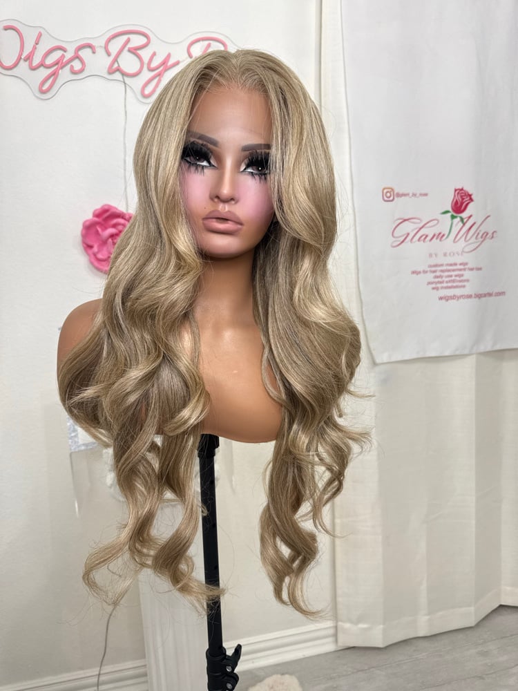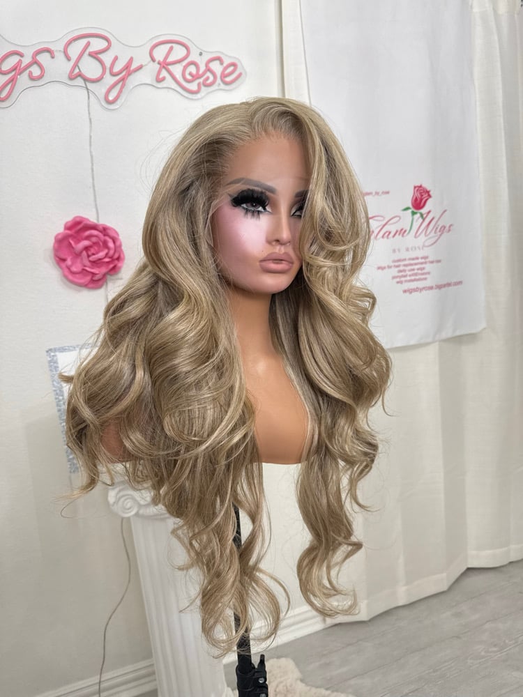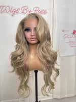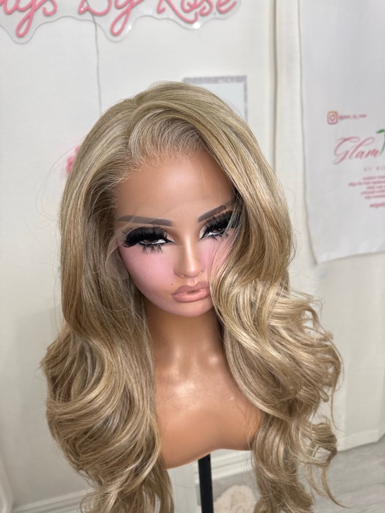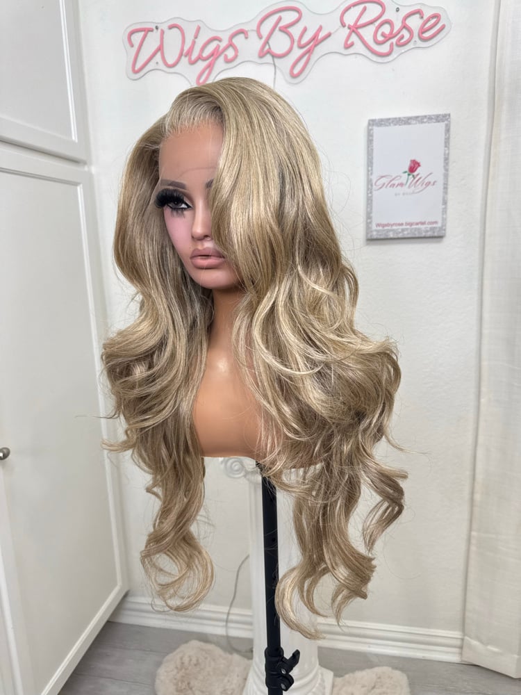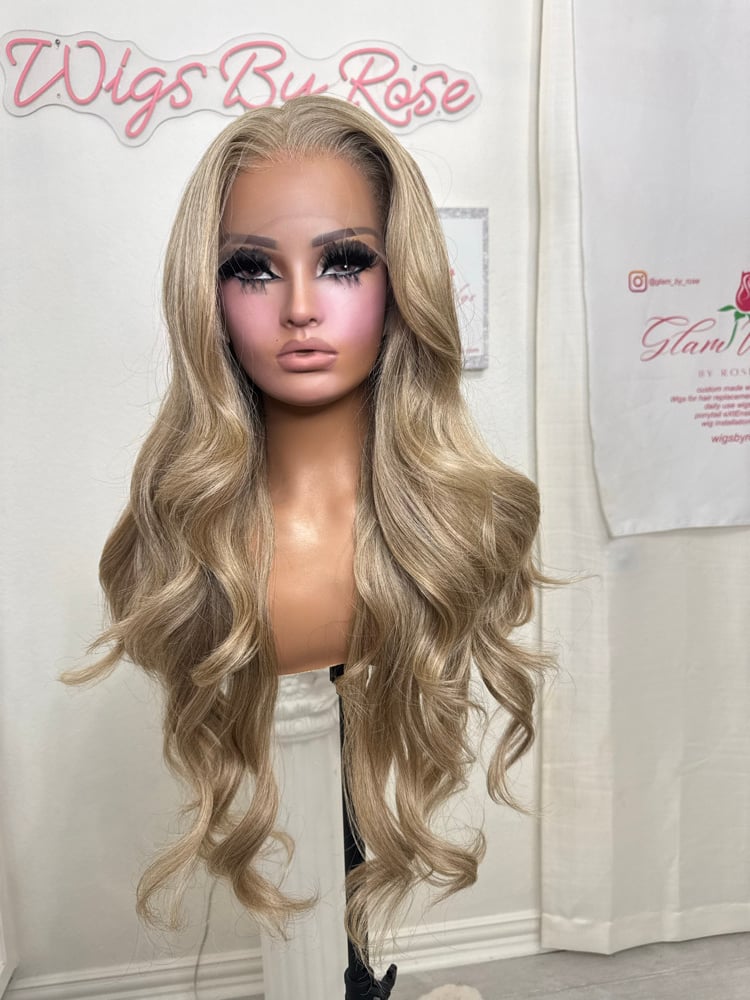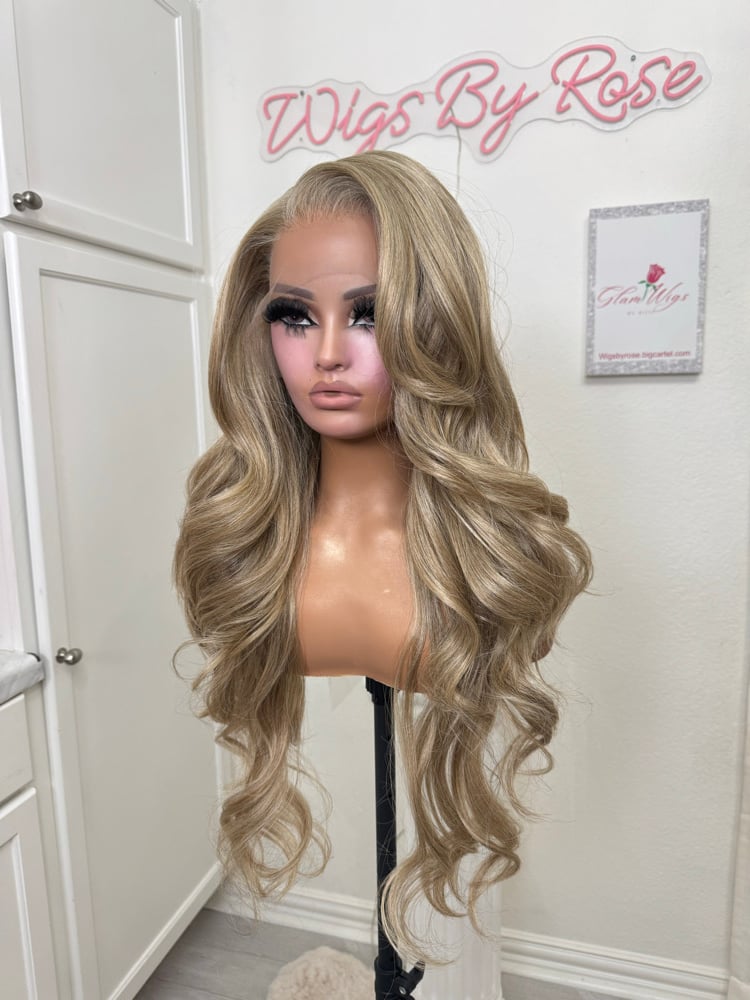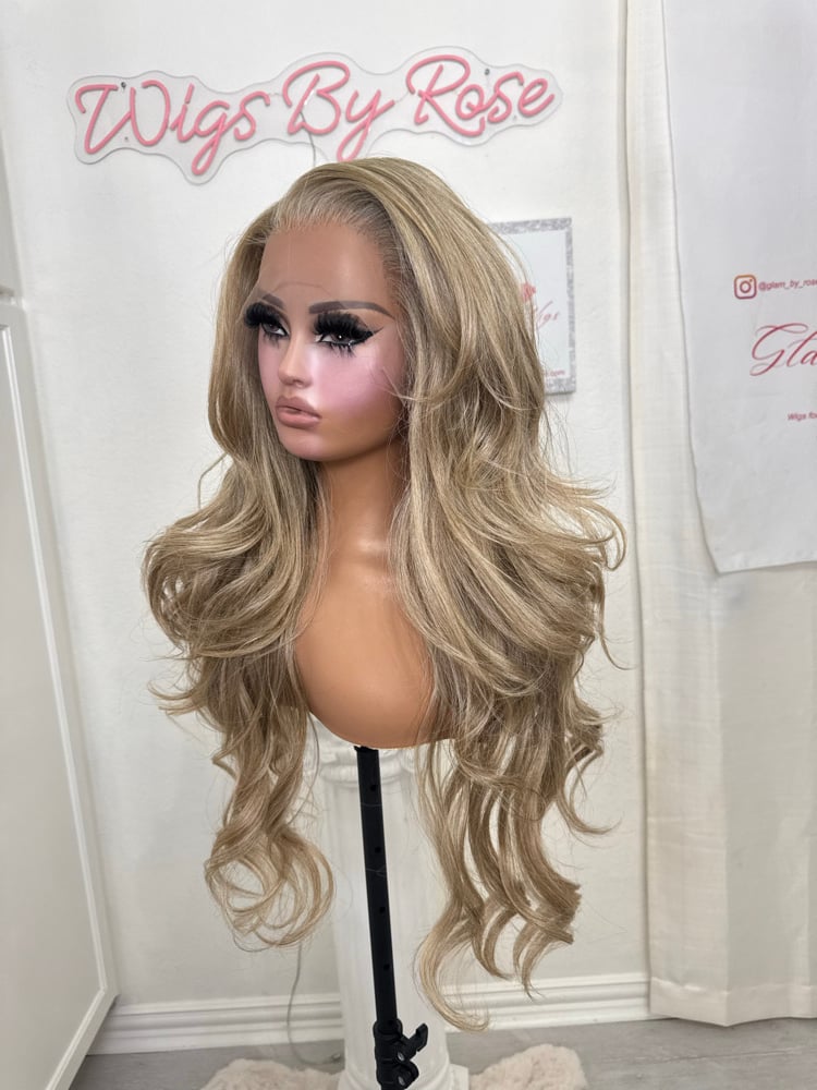 30 inches free parting 13x6 lace front glueless wig hand plucked natural hairline, luxury human hair and synthetic blended fiber, most realistic and natural hair quality heat resistant up to 400° one size fits all stretch, breathable cap with combs elastic band and adjustable straps. Final sale item.