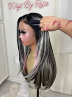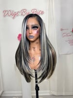 Lace front t part lace, hand plucked natural hairline one size fits all stretch breathable cap with adjustable straps and combs. Luxury synthetic and human hair blended fiber for most realistic and natural hair texture heat resistant up to 400°. 26 inch length with slight layering in front. final sale item.