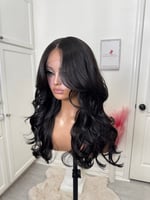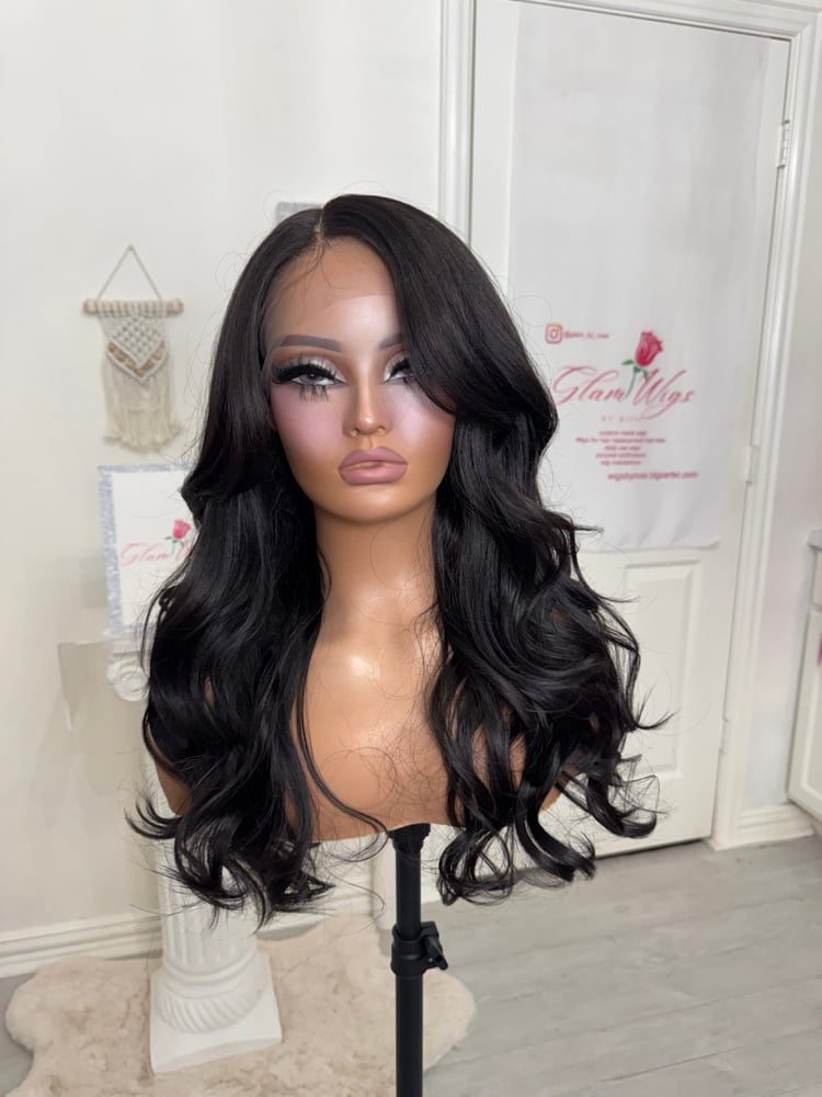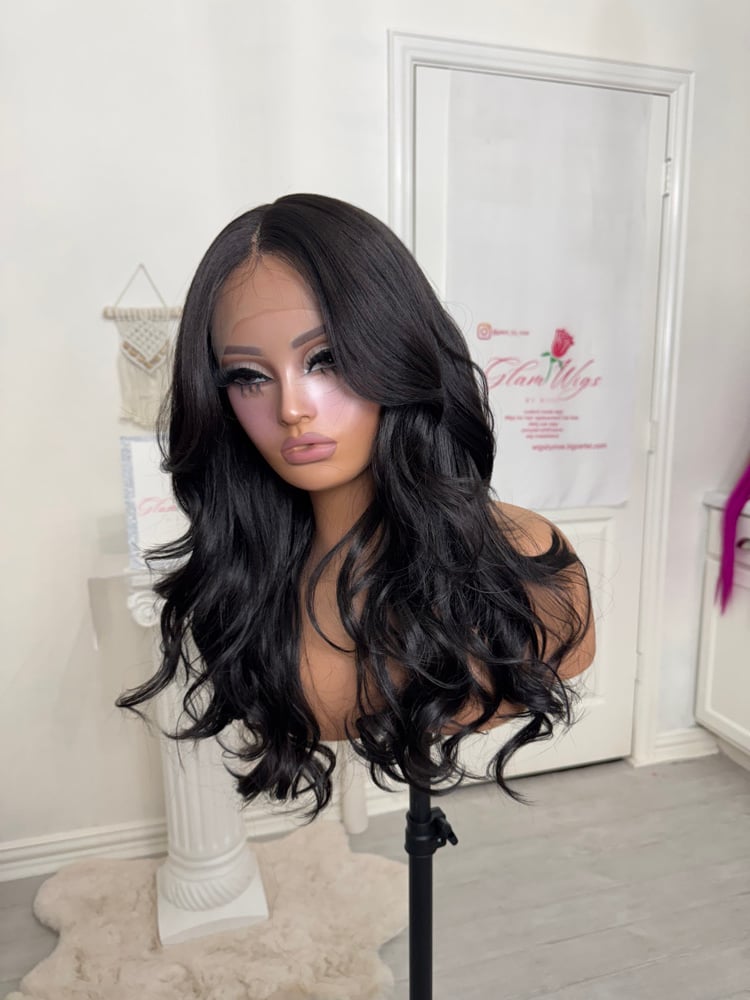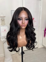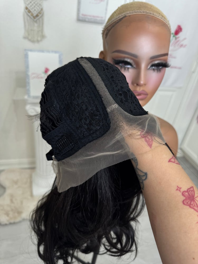 T part lace front glueless wig, Human hair and synthetic blended luxury fiber 22 inches, heat resistant up to 400° soft natural hair texture. One size fits all stretch breathable cap, final sale item.
