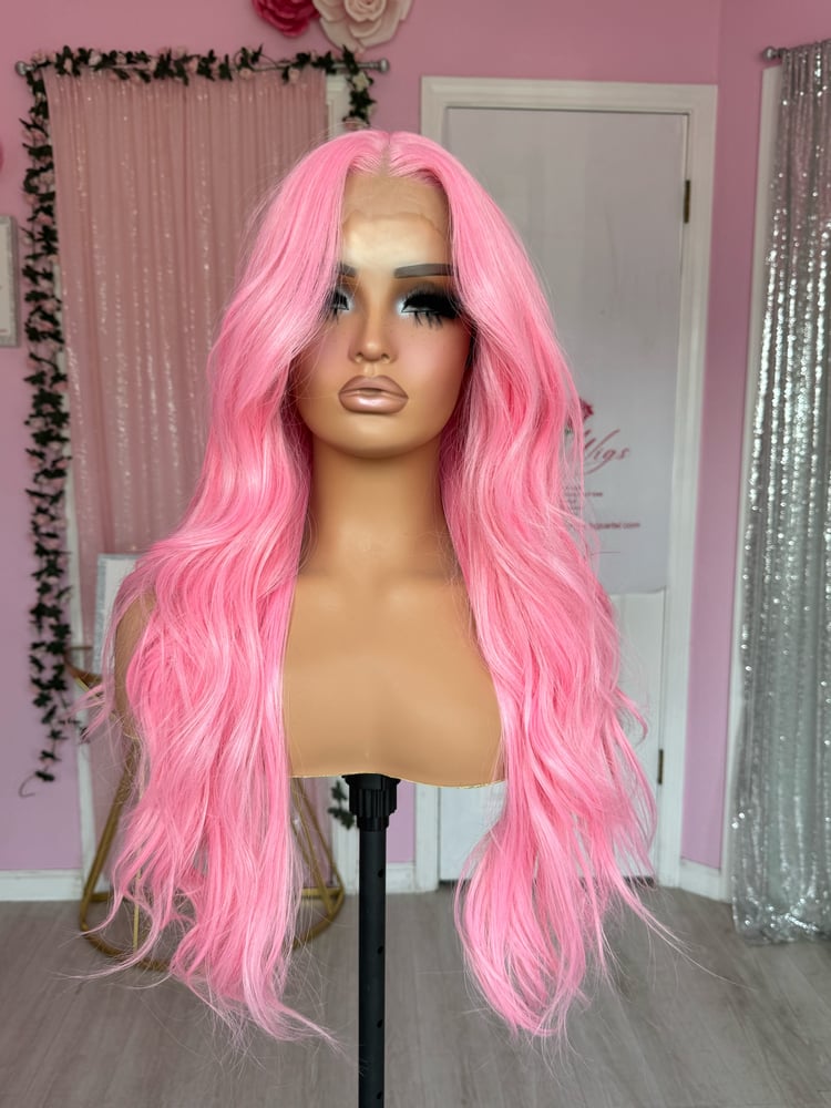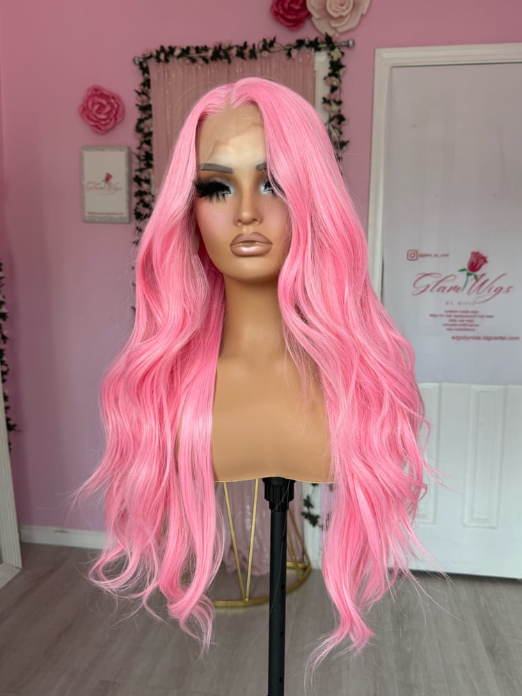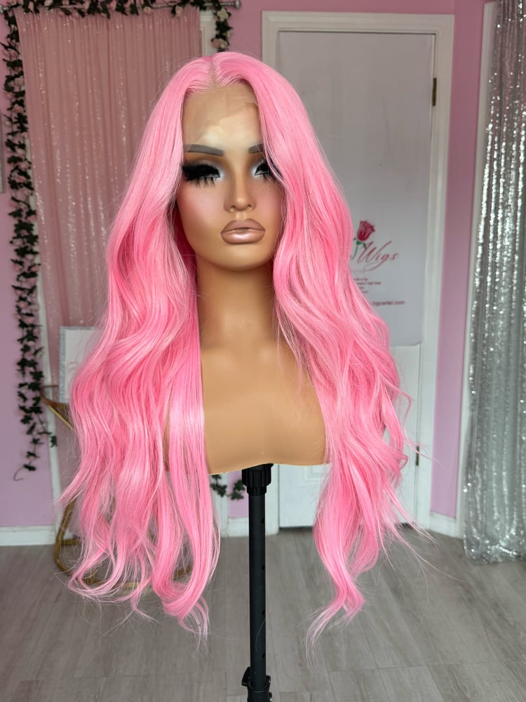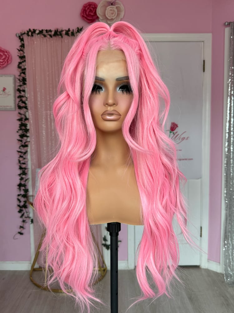 Luxury free part HD lace synthetic and human hair blended fiber heat resistant up to 400° combs and adjustable straps. Inside hand, plucked natural hairline, baby hairs cut with face framing layers, silky soft natural hair textute, final sale item