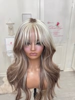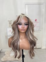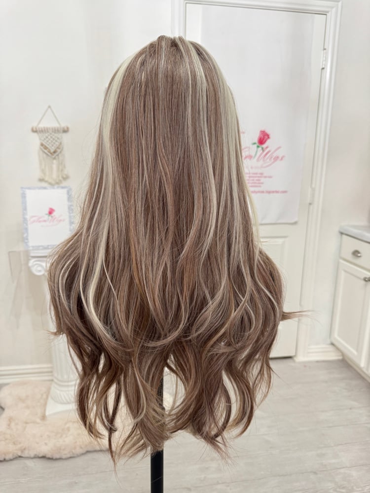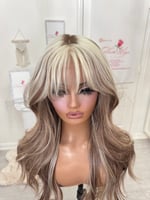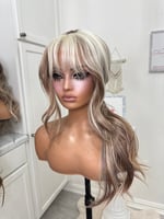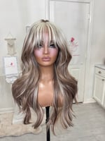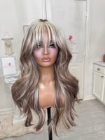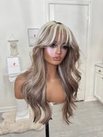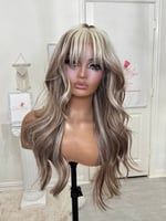 Lace frontal 13x4 lace wig glueless and beginner friendly, One size fits all stretch breathable cap with combs and elastic adjustable straps inside, High quality, synthetic and human hair blended fiber heat resistant up to 400° 26 inch length, the final sale item