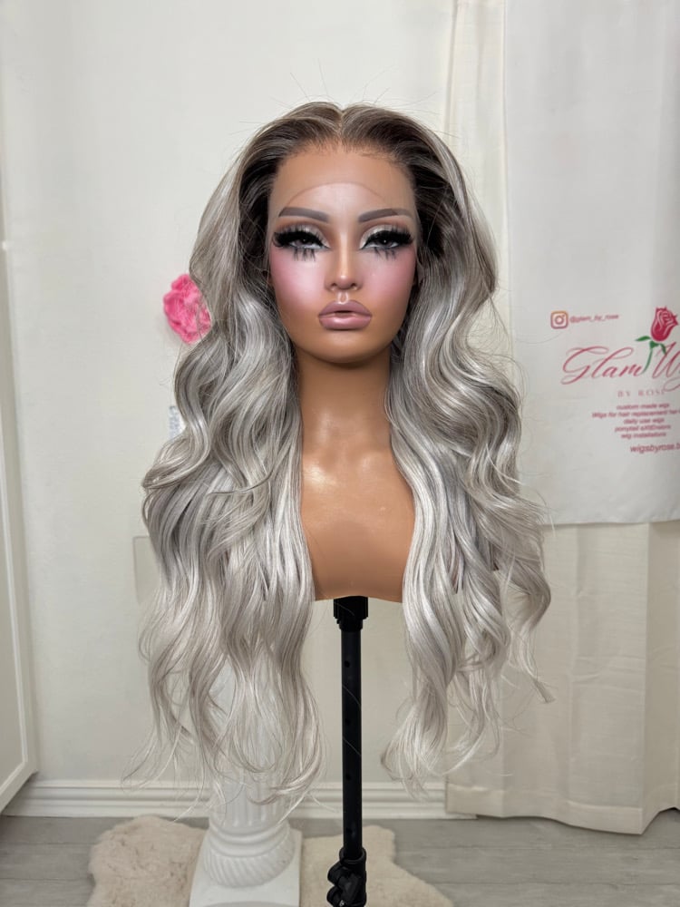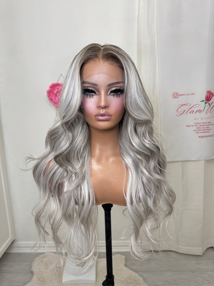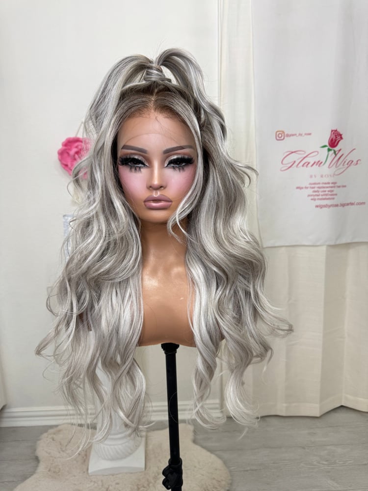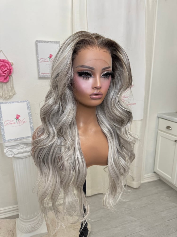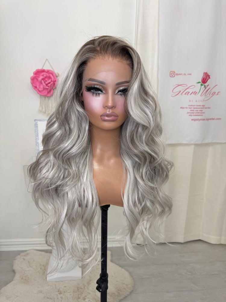 13x6 lace front glueless free part wig with hand plucked natural hairline, One size fits all stretch breathable cap with combs and elastic band, luxury synthetic and human hair blended fiber heat resistant up to 400° most natural hair texture 29 inch length with front layers. Final sale item.