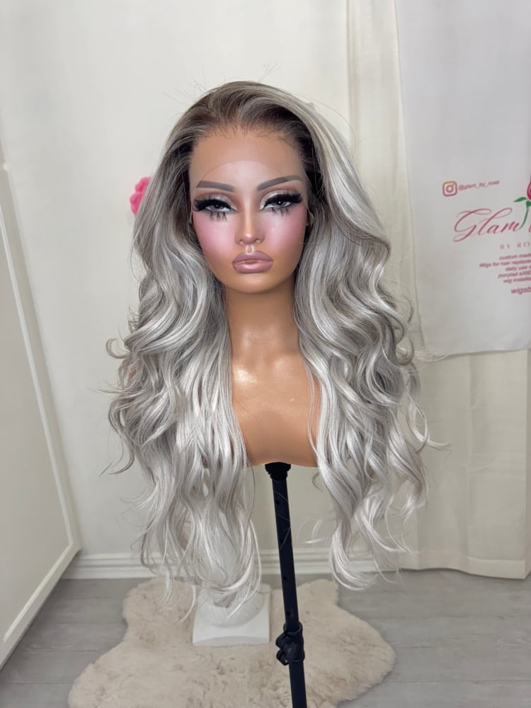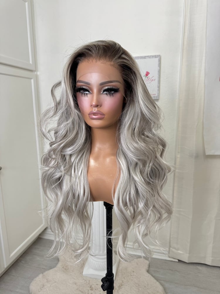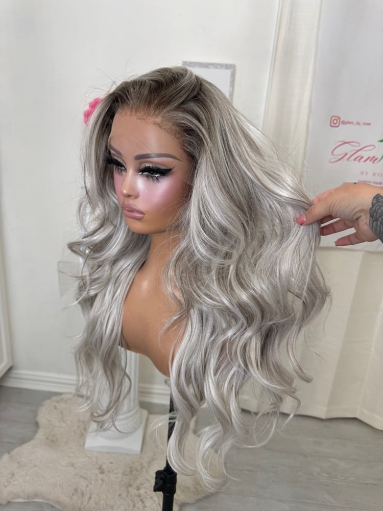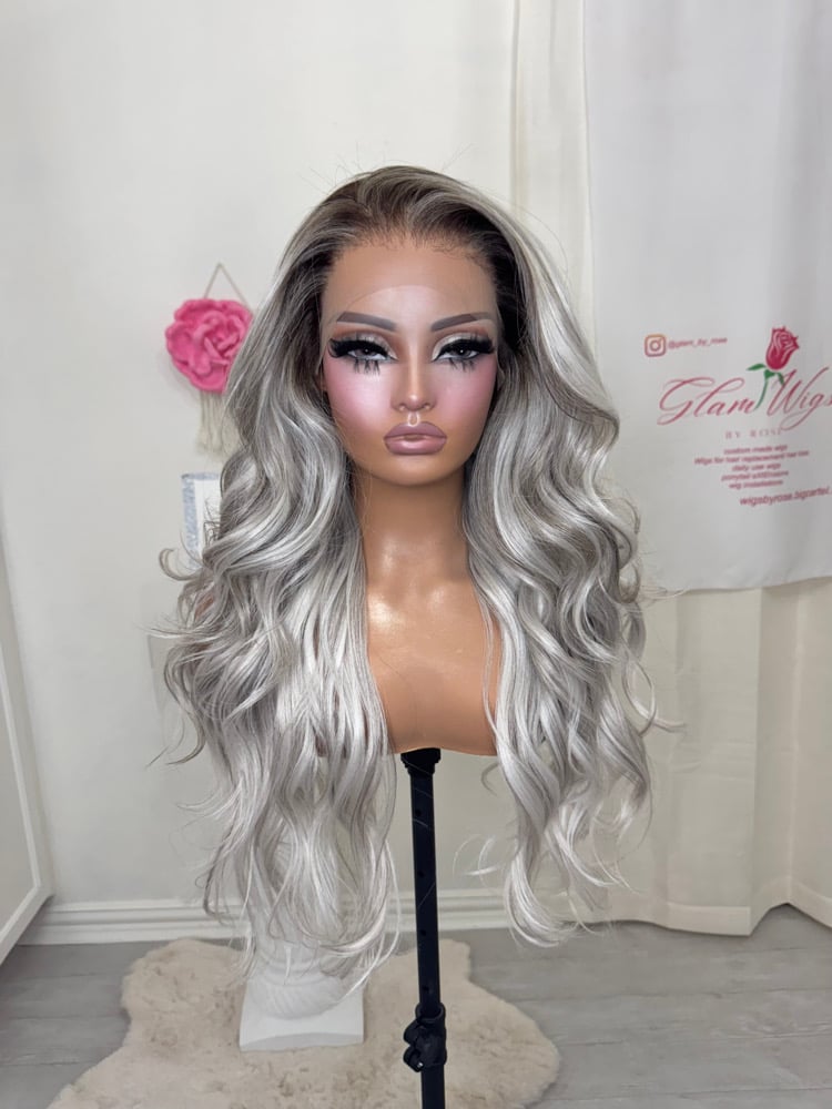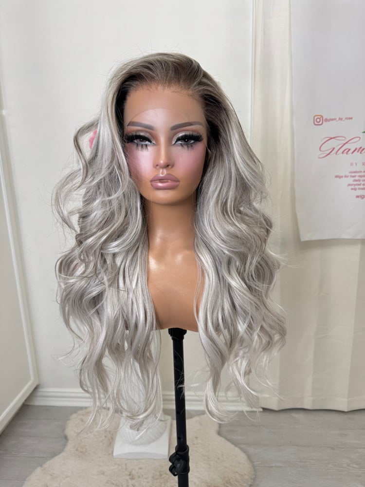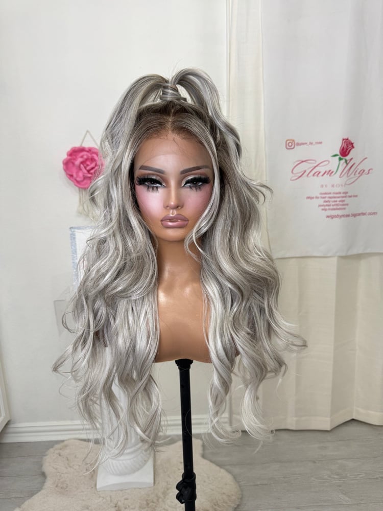 13x6 lace front glueless free part wig with hand plucked natural hairline, One size fits all stretch breathable cap with combs and elastic band, luxury synthetic and human hair blended fiber heat resistant up to 400° most natural hair texture 29 inch length with front layers. Final sale item.