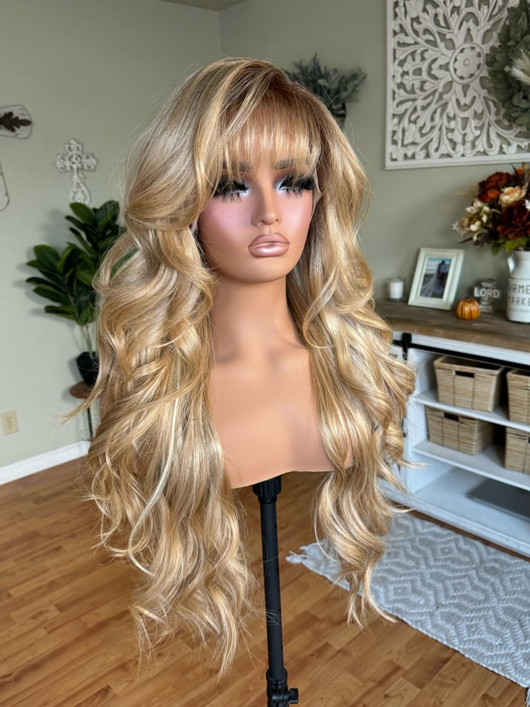 Free part 13x4 lace front luxury human hair and synthetic blended fiber heat resistant up to 350° combs and adjustable straps with elastic band realistic to natural hair texture 29 inch length final sale item
