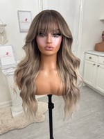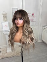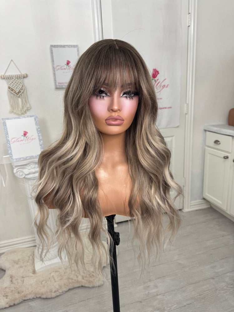 24 inches lace part glueless wig, Synthetic and human hair blended fiber, heat resistant up to 400° one size fits all, combs and adjustable straps inside, heat resistant up to 400° silky hair texture, final sale item