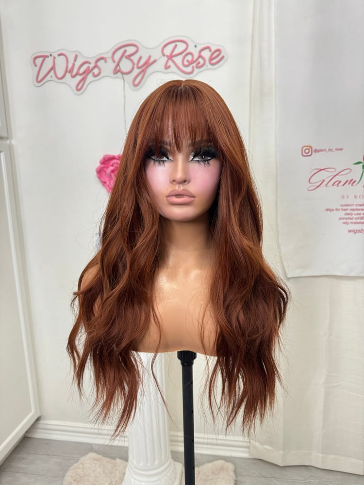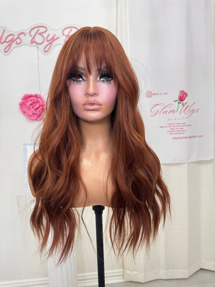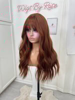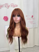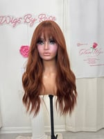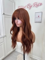Throw on and go no lace wig, ready to wear easy beginner friendly, one size fits all stretch breathable cap, 22 inches, wispy cut bangs, heat restant up to 350, adjustable straps one size fits all glueless wig, fina sale item no return.