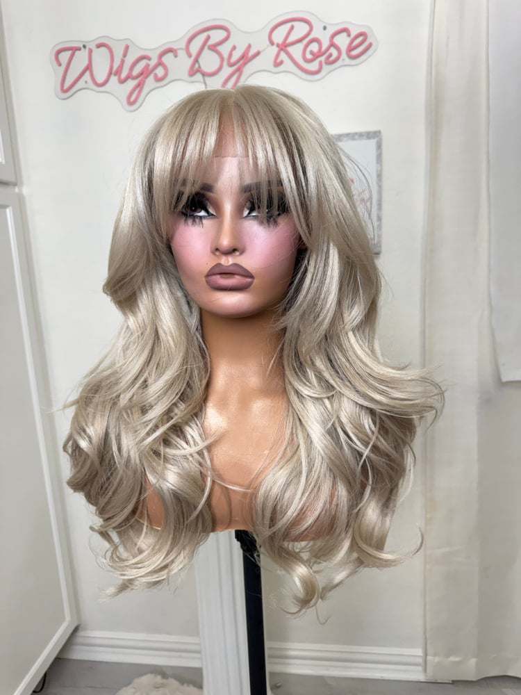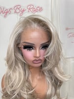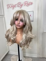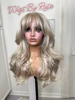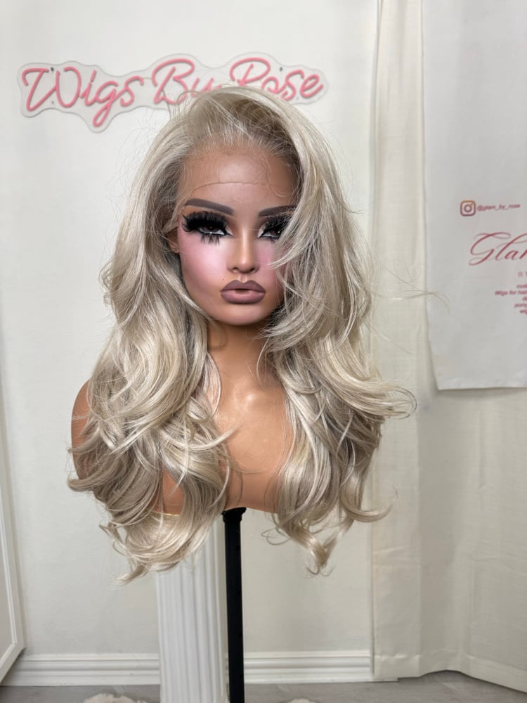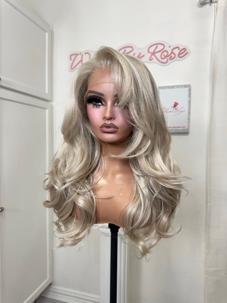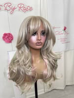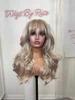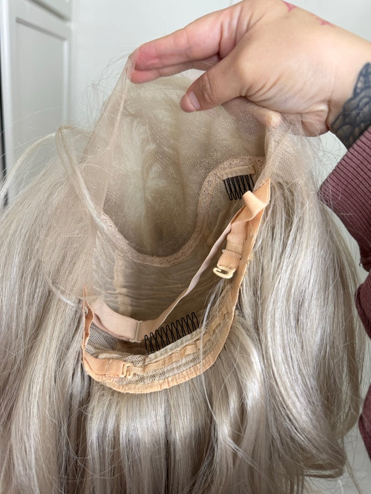 26 inches free parting glueless luxury wig, hand plucked natural hairline, human hair and synthetic blended luxury fiber, most realistic and natural hair quality. One size fits all stretch breathable cap with adjustable straps combs and elastic band inside. Heat resistant up to 400°. Final sale item.