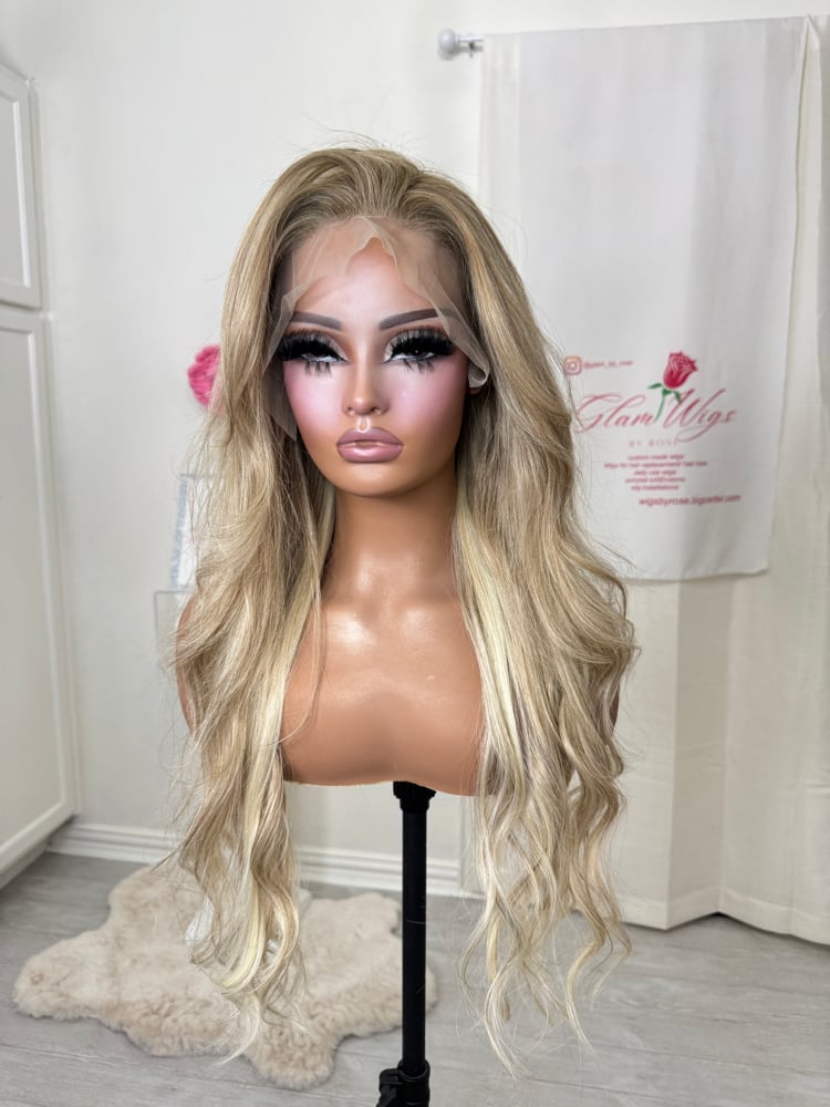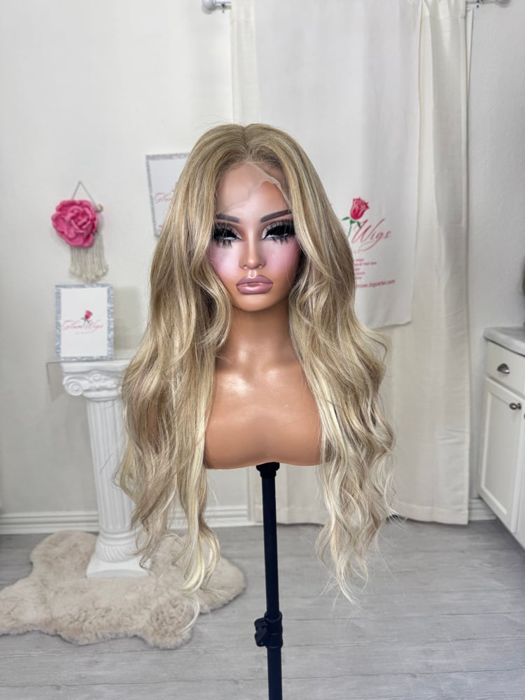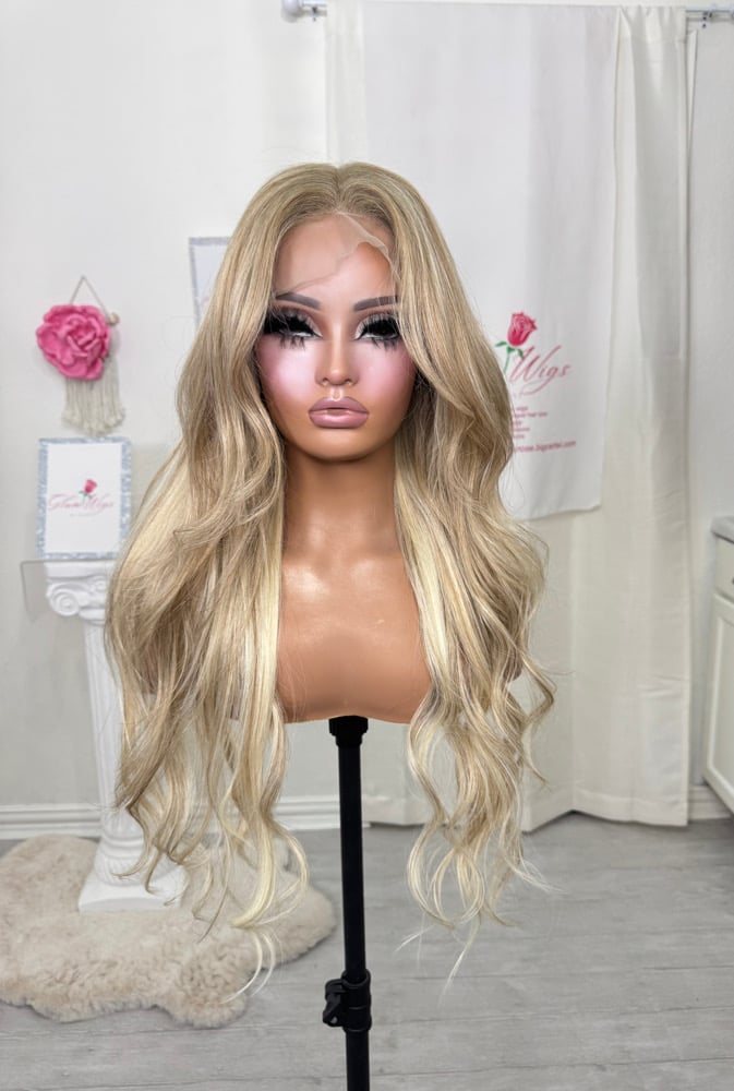 100% all human hair 13 x 6 lace front free parting wig, one size fits all stretch breathable cap with combs and adjustable straps, light plucked hairline natural lace, 30 inches with light face framing layers, 190 density . Final sale item .