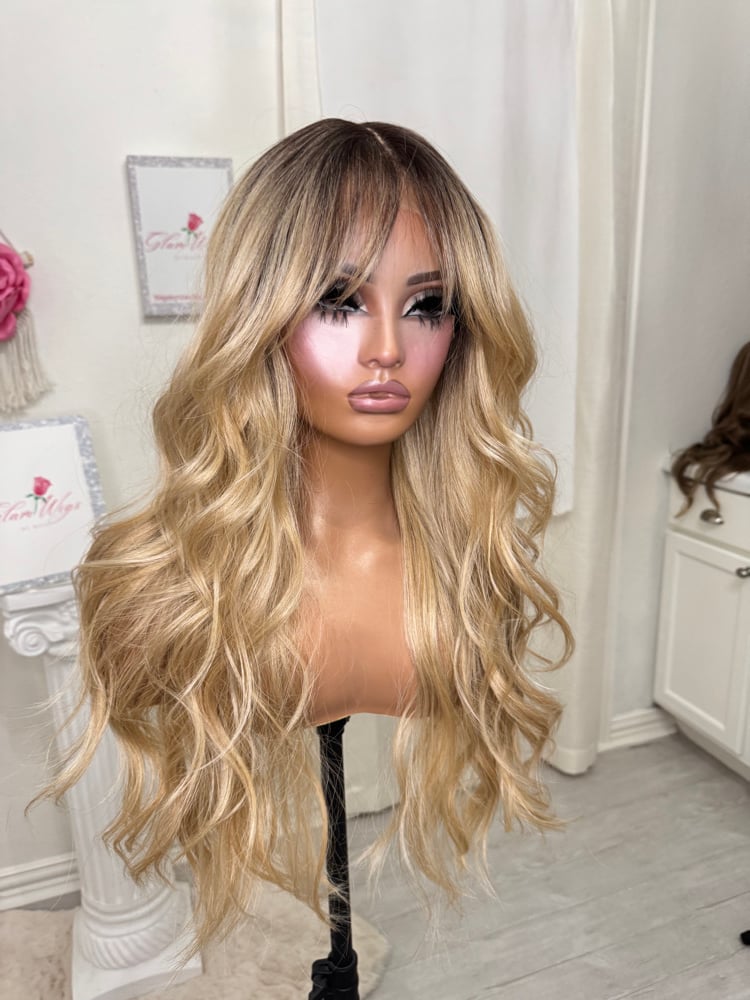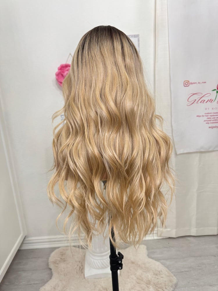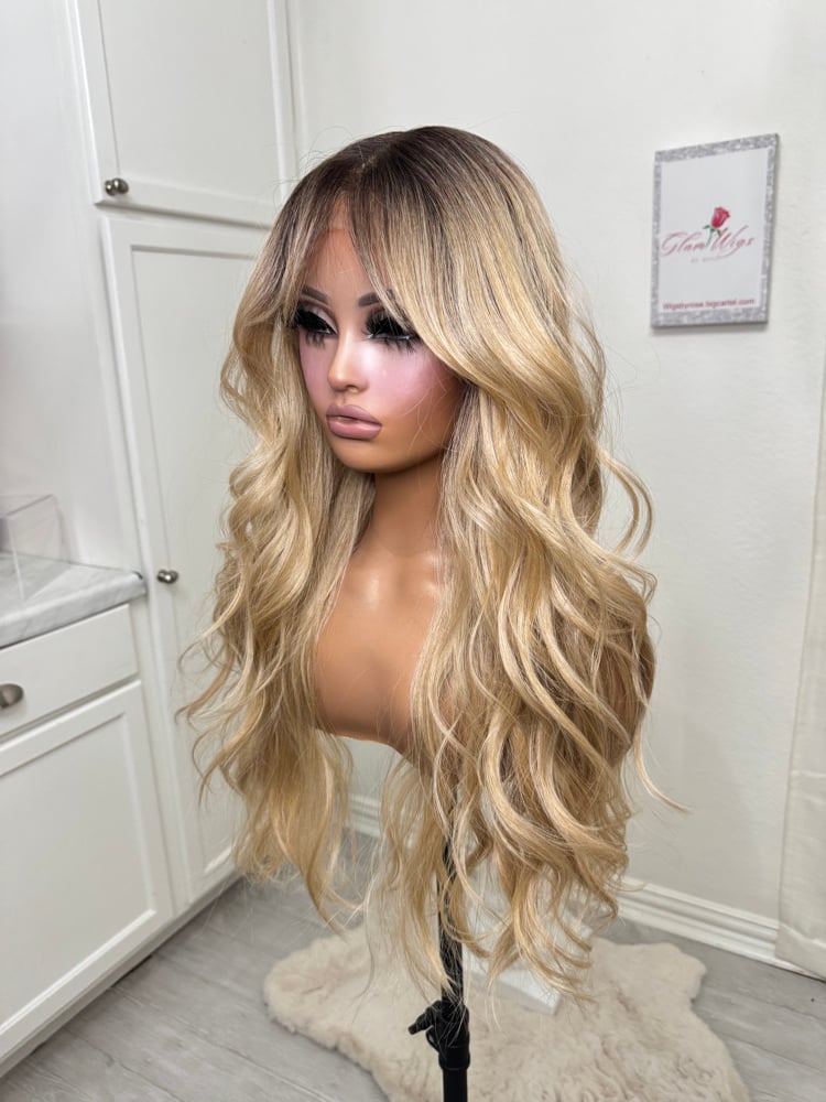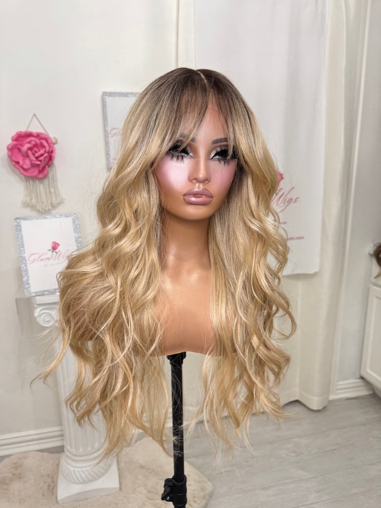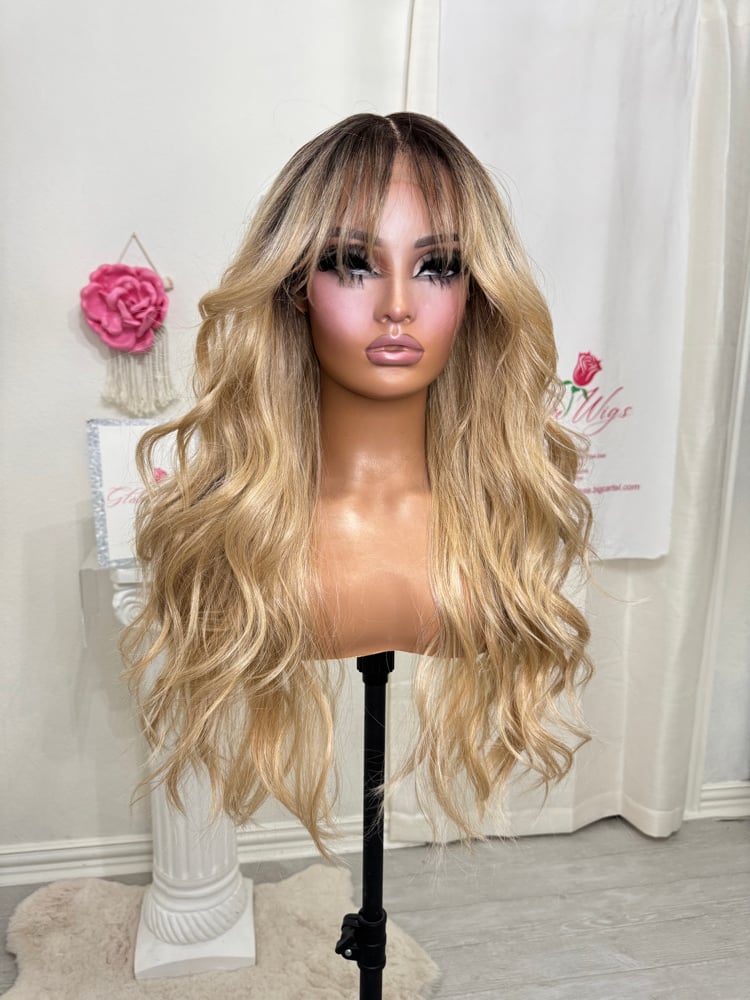 T part lace front glueless wig hand plucked hairline natural look, human hair and synthetic blended fiber soft realistic hair texture, heat restant up to 400, one si3 fits all stretch breathable cap, combs and adjustable straps. Final sale item.