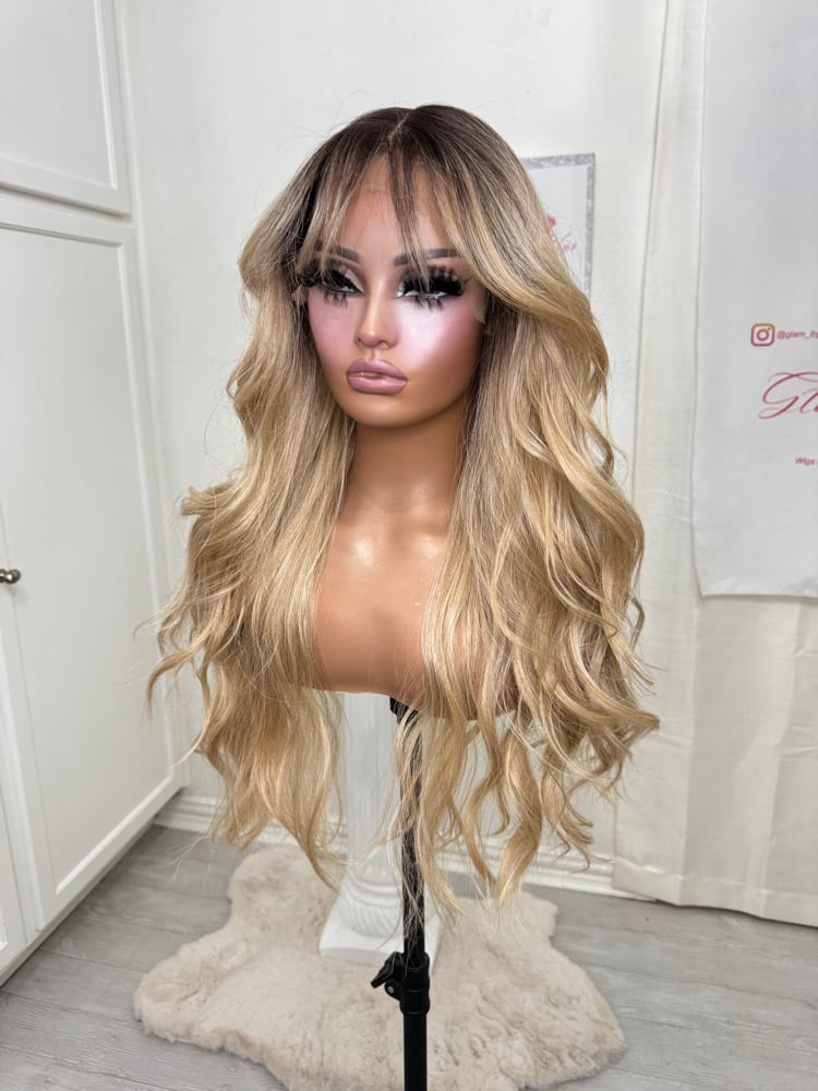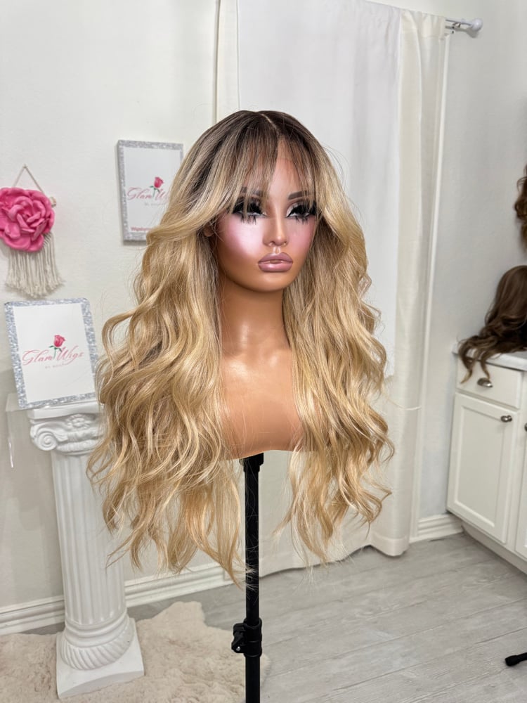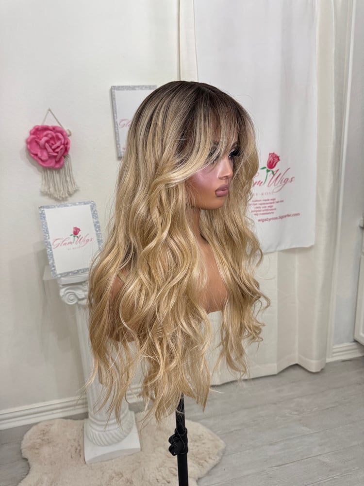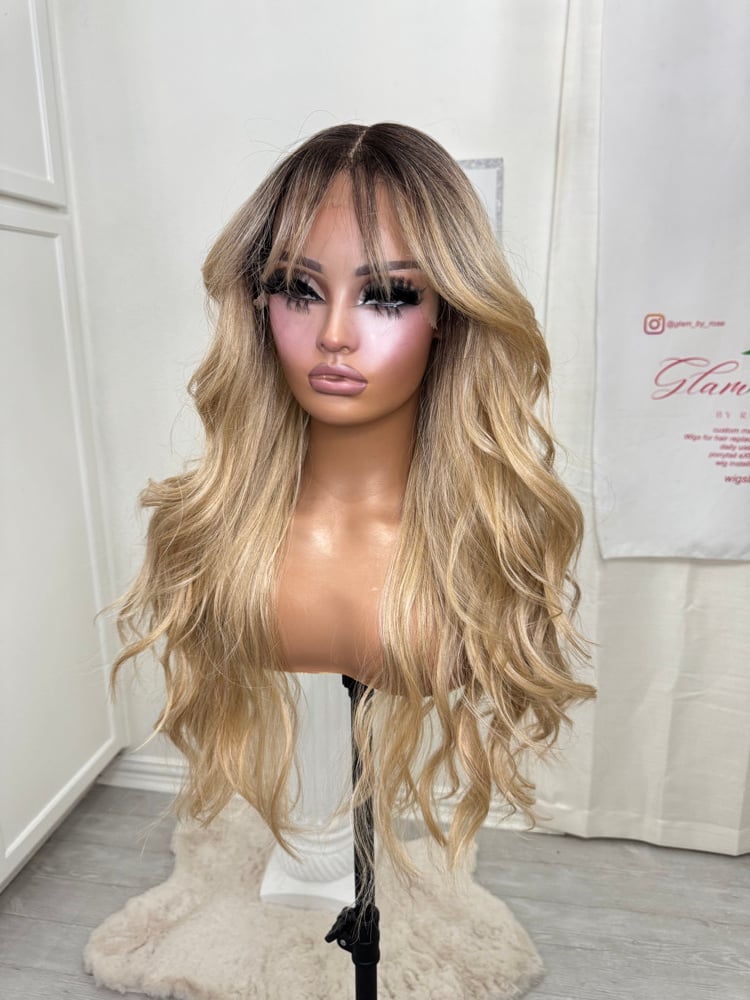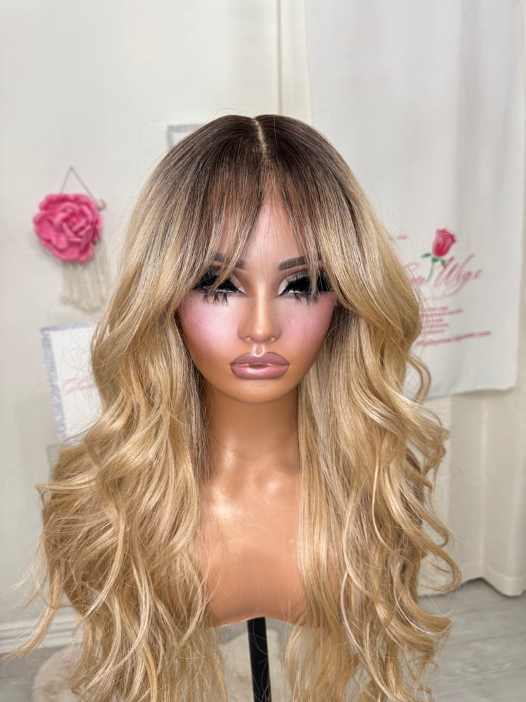 T part lace front glueless wig hand plucked hairline natural look, human hair and synthetic blended fiber soft realistic hair texture, heat restant up to 400, one si3 fits all stretch breathable cap, combs and adjustable straps. Final sale item.