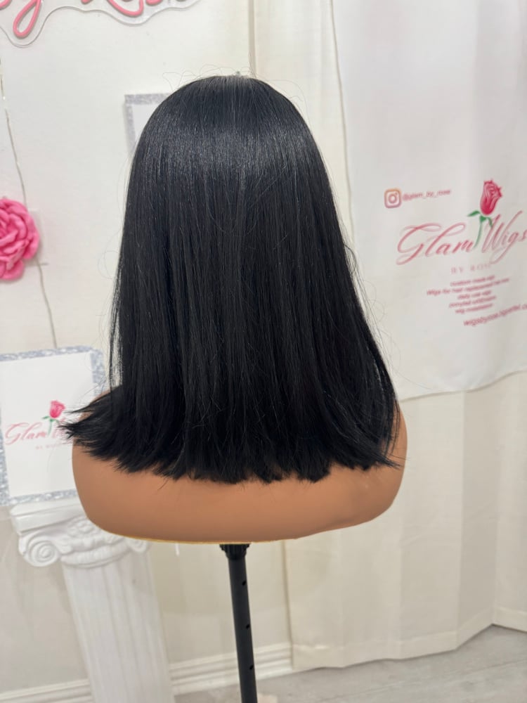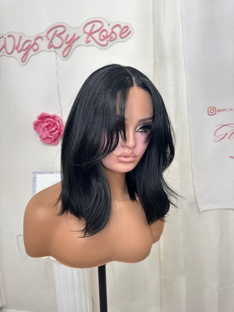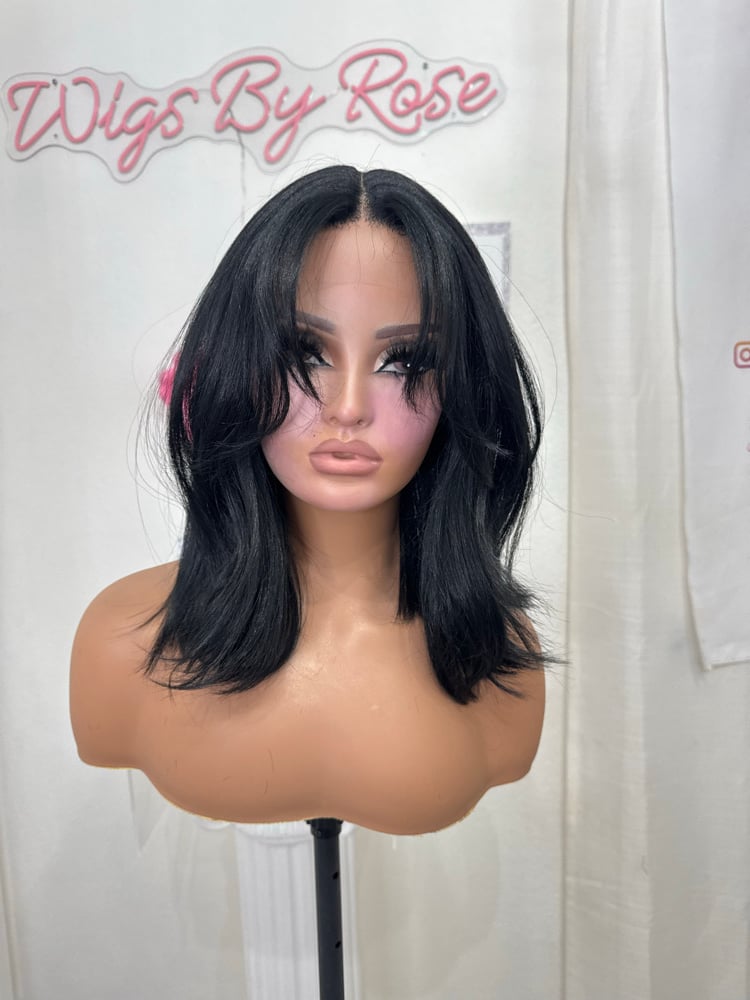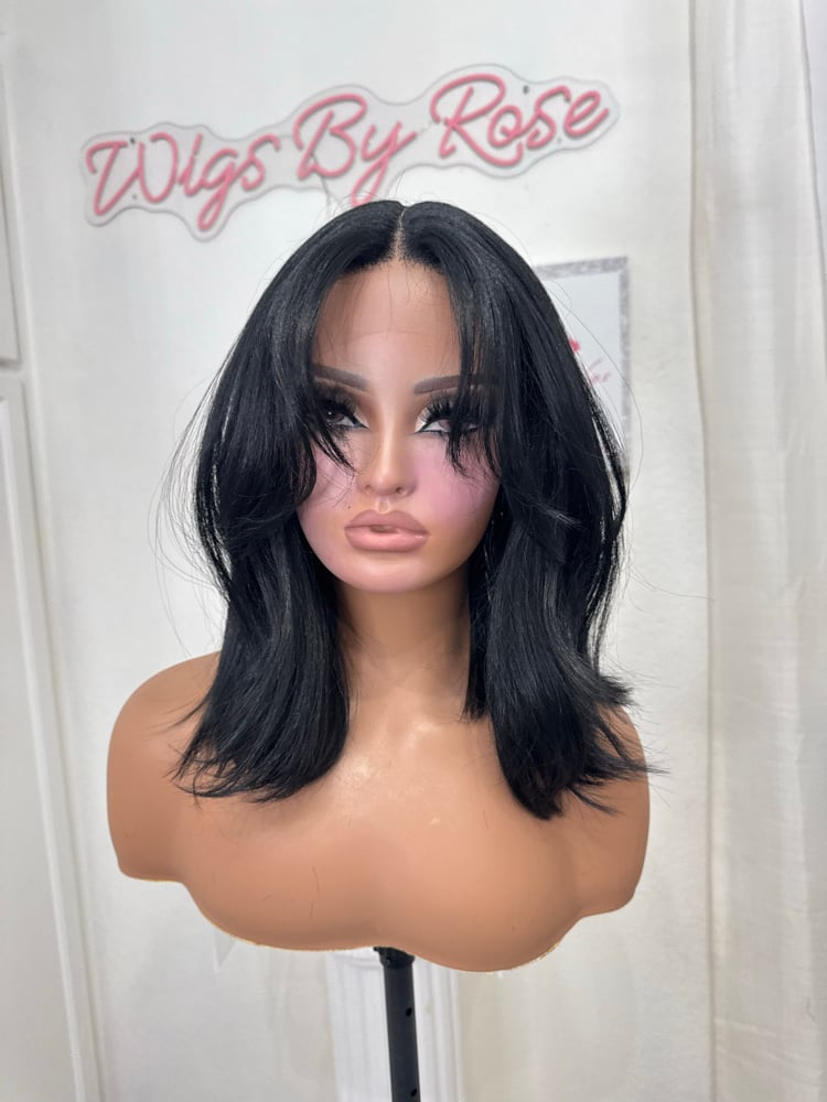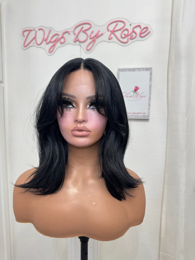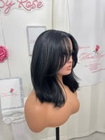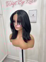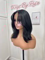 T part lace front 14 inches hand plucked natural hairline glueless wig, luxury human hair and synthetic blended fiber, soft natural realistic hair texture, easy comfortable shoulder length style. Heat resistant up to 400° One size fits all stretch breathable cap, with adjustable straps and combs final sale item.