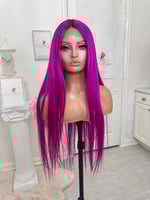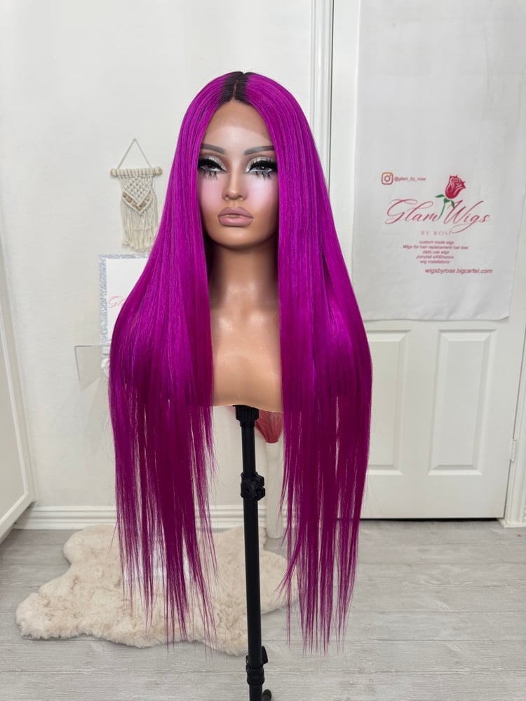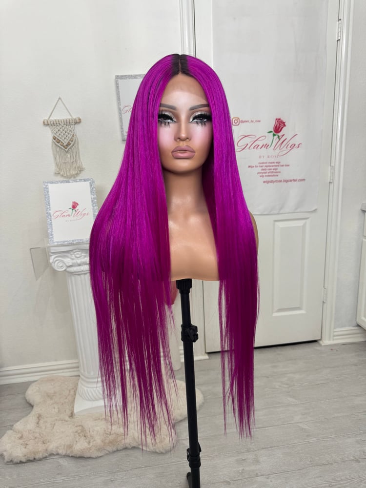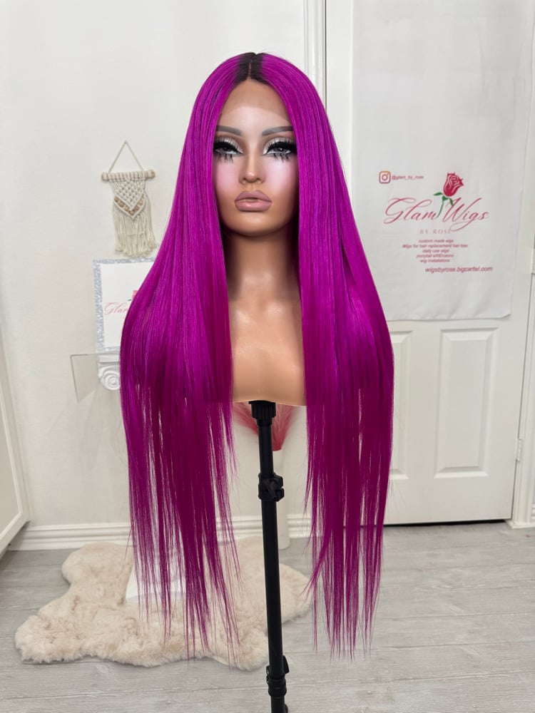 34 inches t part lace front glueless wig with hand painted smudge roots, Human hair and synthetic blended luxury fiber, best hair quality soft natural hair texture, heat resistant up to 400°, one size fits all stretch breathable cap, combs and adjustable straps, final sale item.