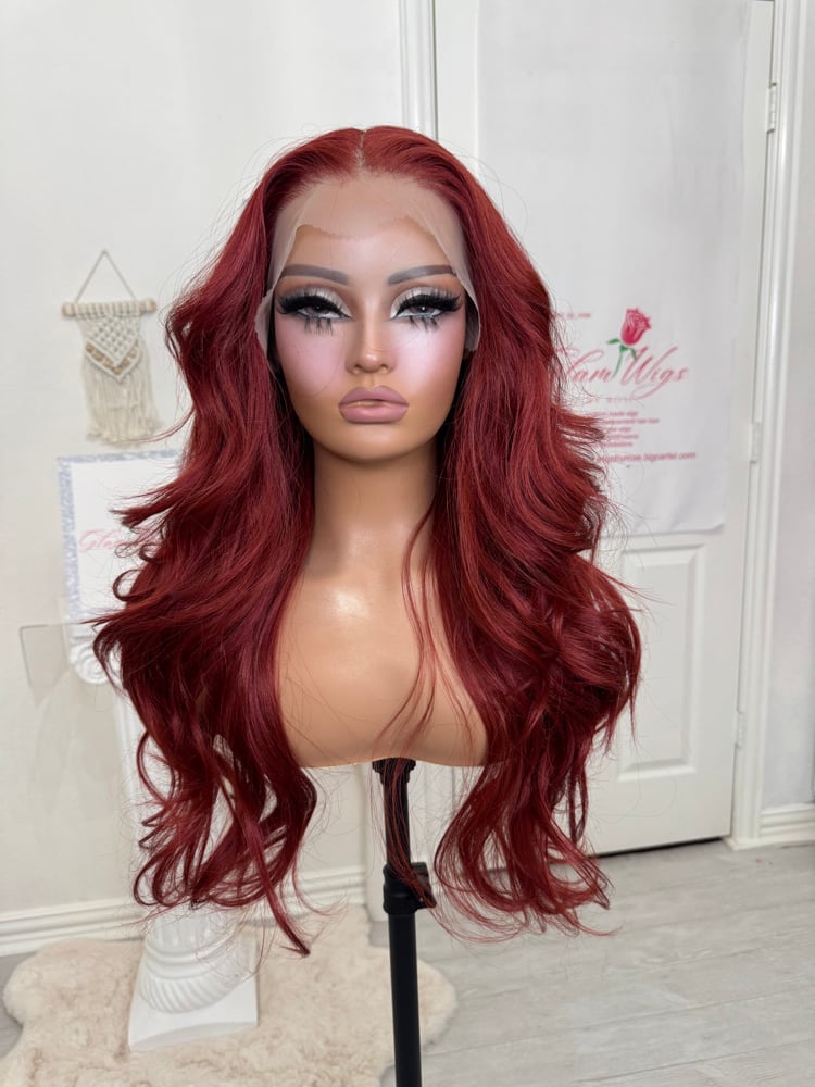 Lace frontal 13x6 lace front free parting wig, 28 inches, Human hair and synthetic blended luxury fiber best synthetic hair quality, heat resistant up to 400° one size fits all stretch breathable cap, combs and adjustable straps inside final sale item