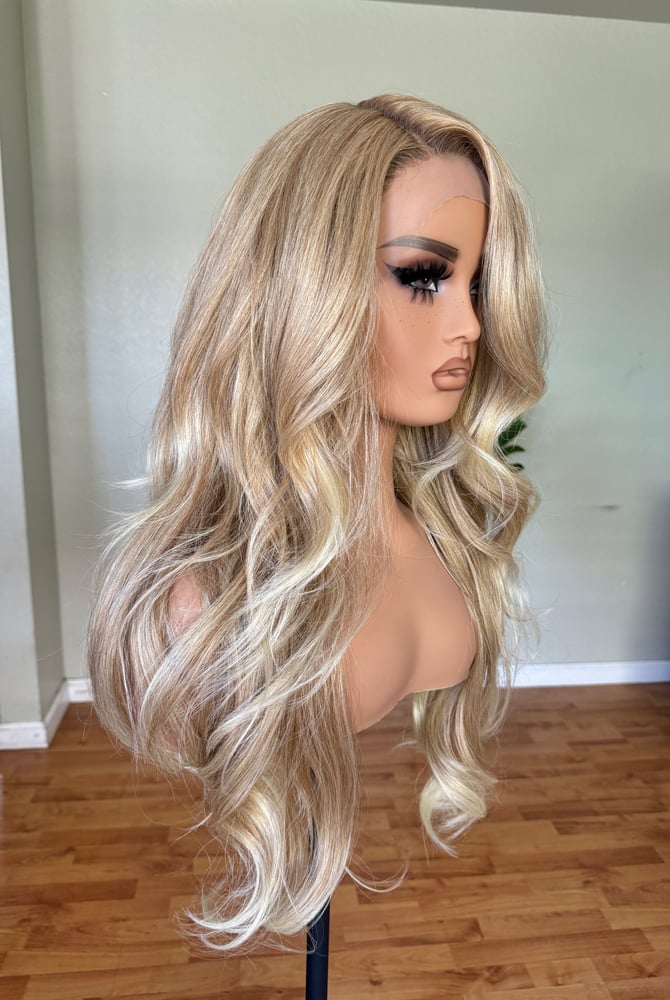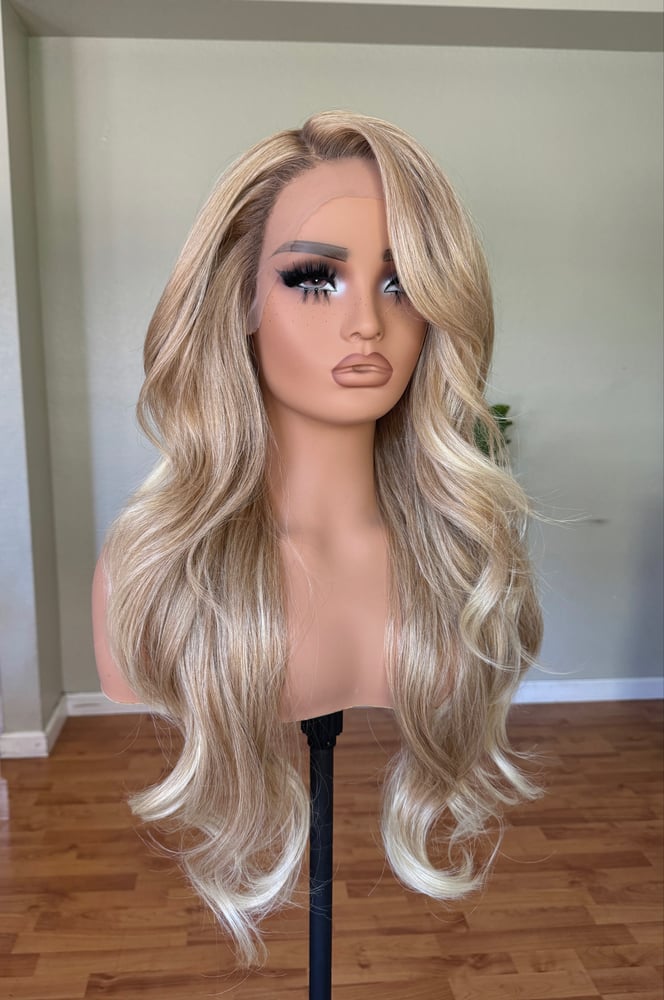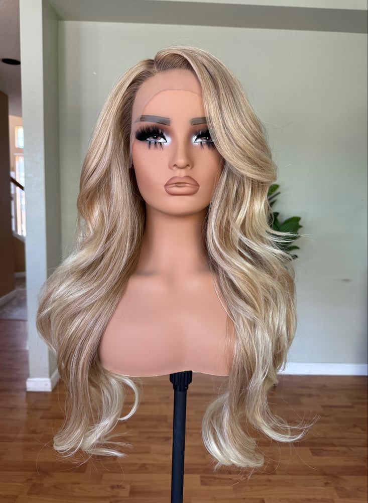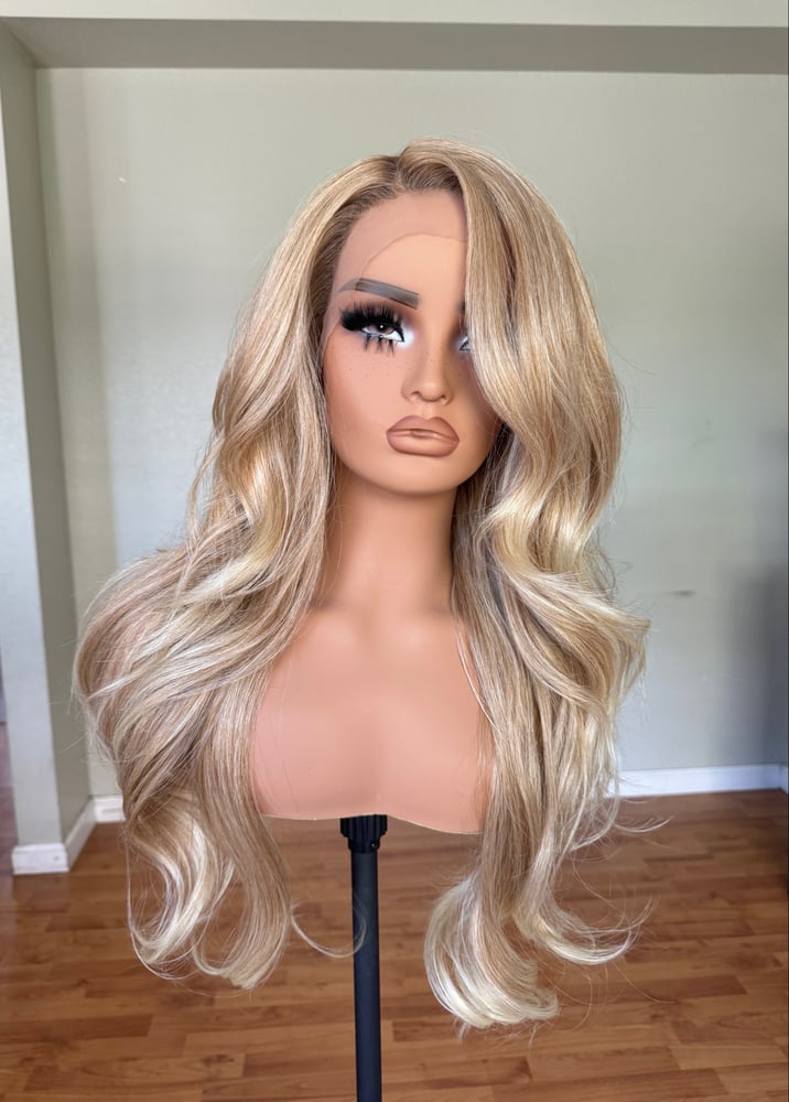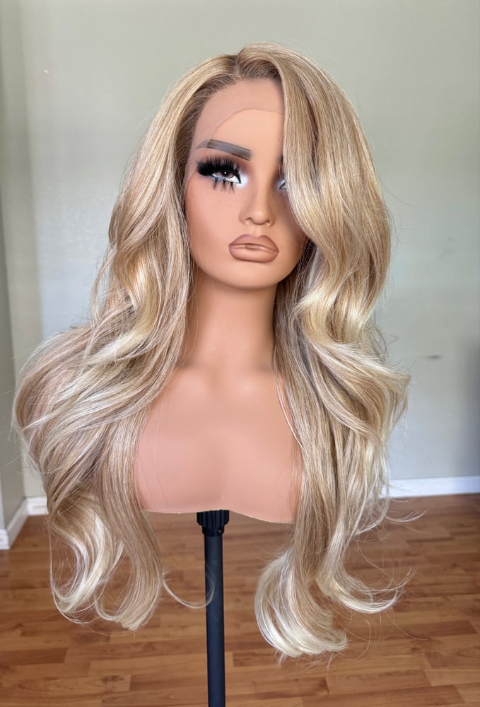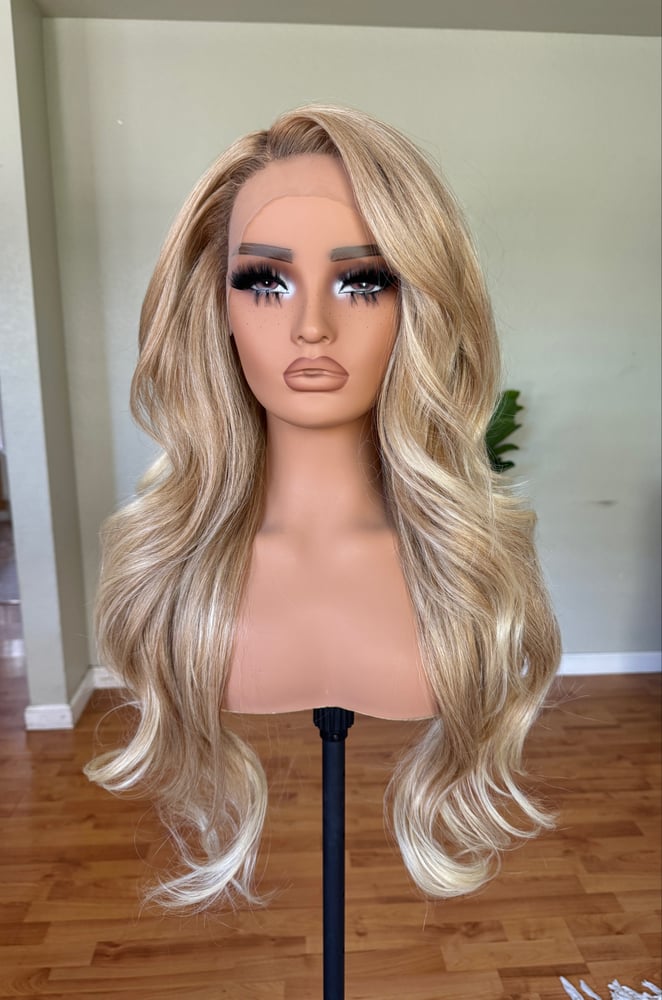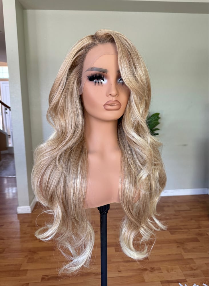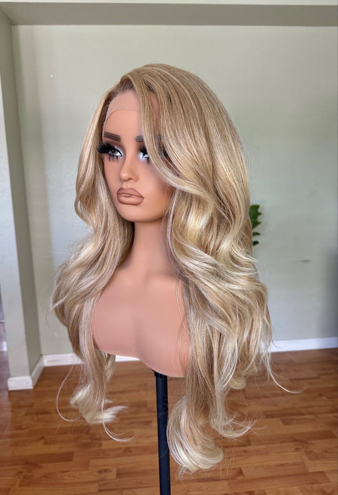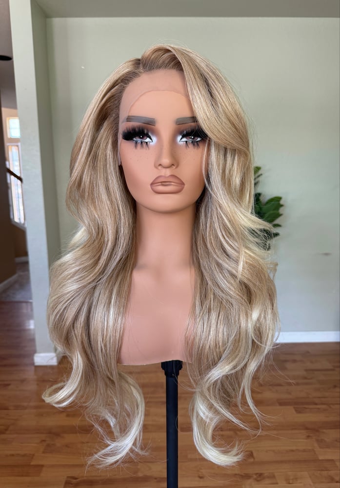 28 inch HD lace front luxury t part gluless wig heat resistant up to 400, human hair and synthetic blended fiber soft natural hair texture combs and adjustable straps most b natural hair texture, final sale item.