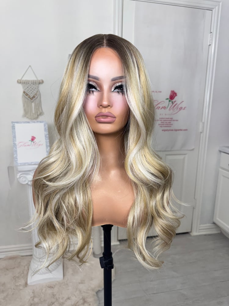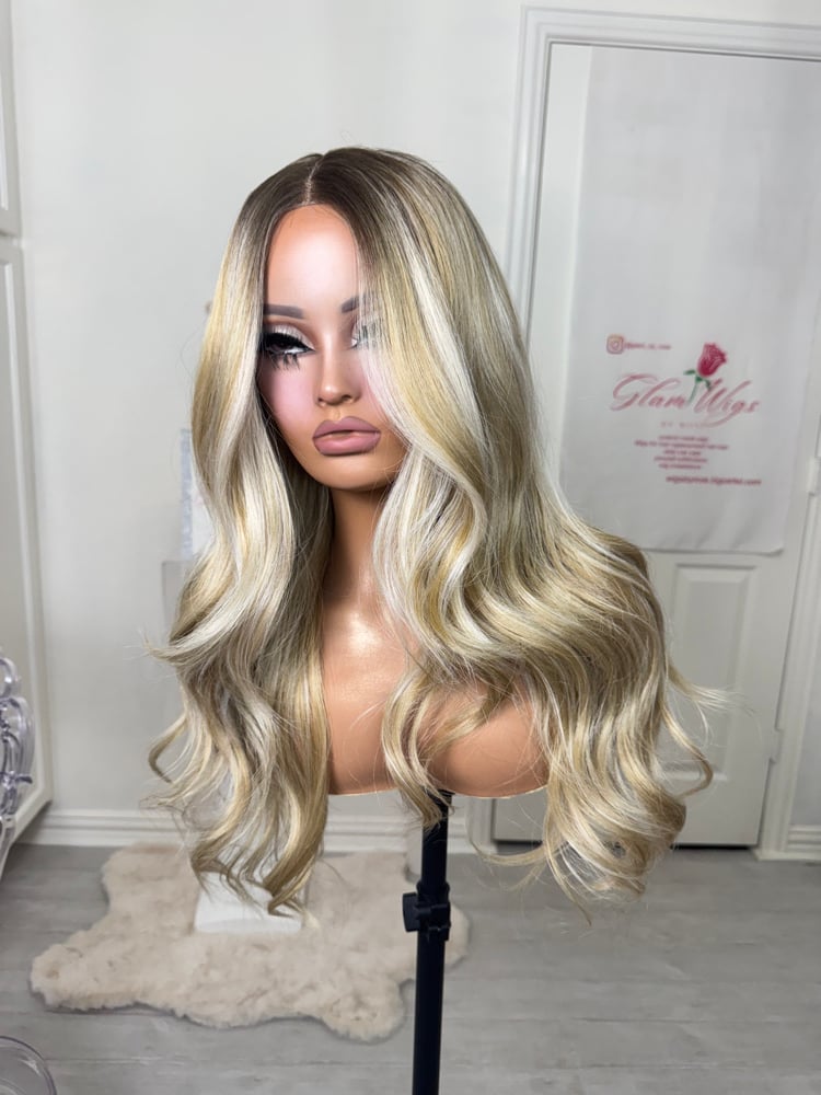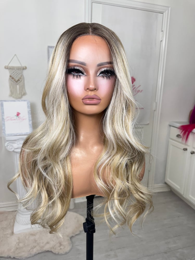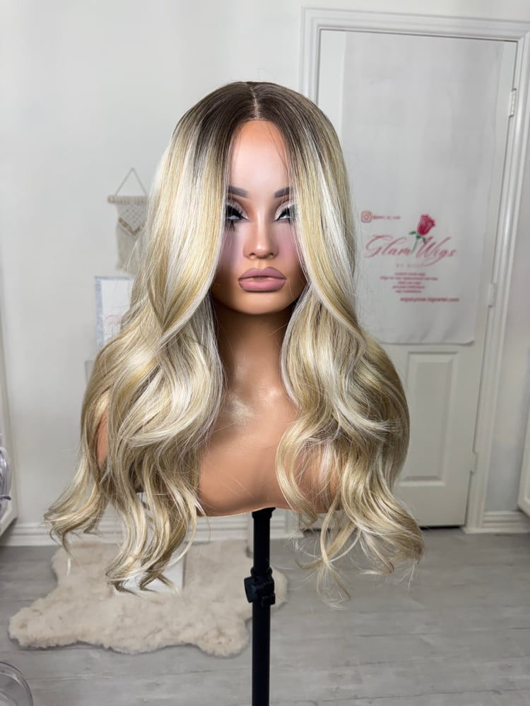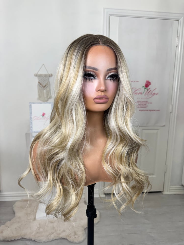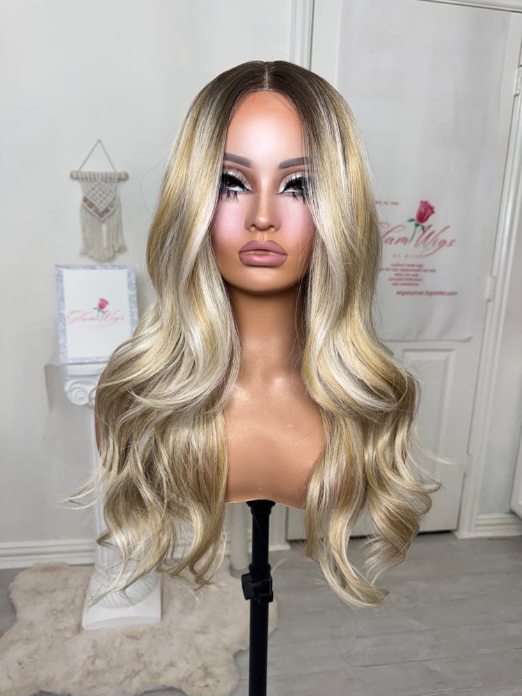 T part lace front glueless wig 22 inches, Synthetic and human hair blended luxury fiber heat resistant up to 400° best hair quality, soft natural hair texture, stretch breathable one-size-fits-all cap with combs and adjustable straps, final sale item