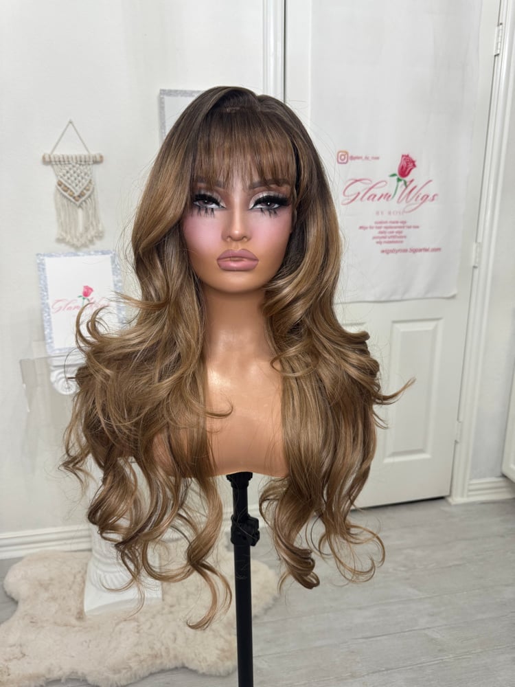 28 inches 13x4 lace front Plucked natural hairline, one-size-fits-all stretch cap, Soft silky hair texture, heat resistant synthetic up to 400°, combs and adjustable straps inside 180 density, final sale item